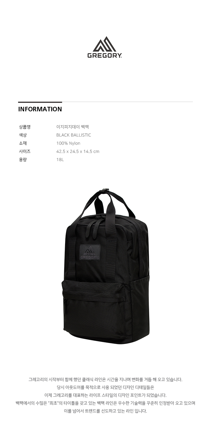 (롯데백화점)(GREGORY) 그레고리 이지피지데이 BLACK BALLISTIC (09J09168) 백팩