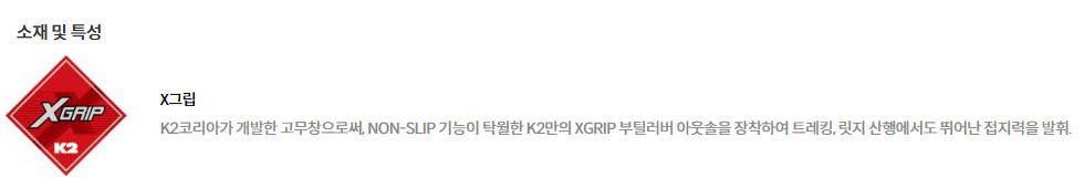 -X그립 아웃솔을 적용하여 미끄럼 방지 및 접지력 우수