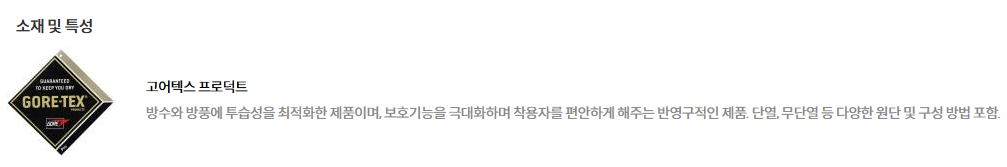 -고어텍스 소재 적용으로 완벽 방수 가능