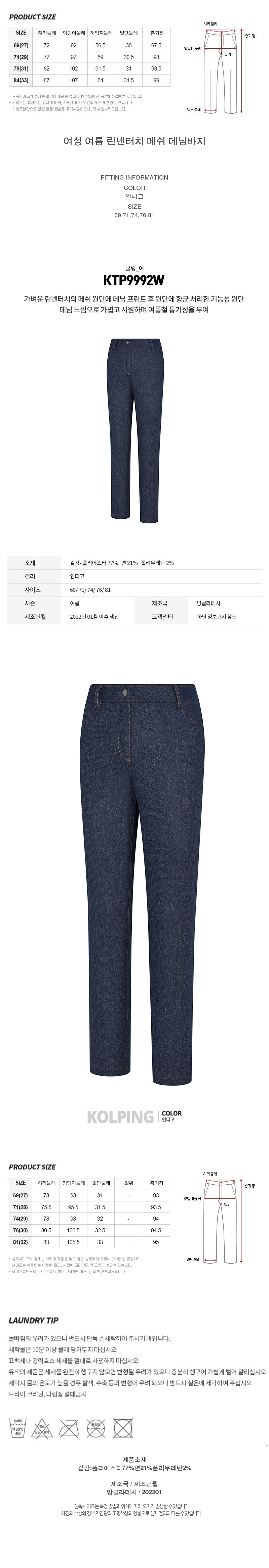 제품소재 : 겉감 - 폴리에스터77% 면21% 폴리우레탄2%