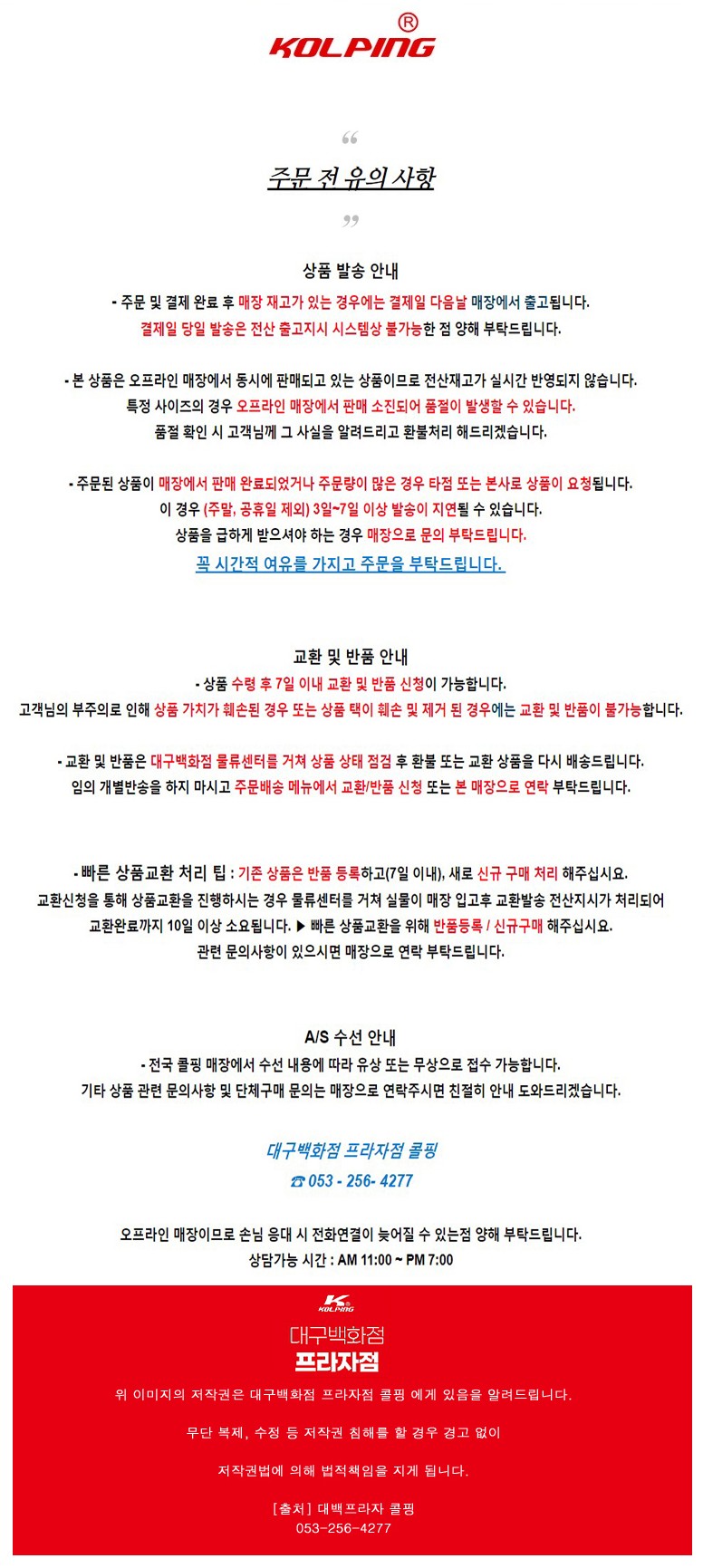 A/S 책임자와 전화번호 : AS 및 기타 문의 사항은 해당 매장 [김연호,053-256-4277] 으로 전화주시면 감사하겠습니다.
