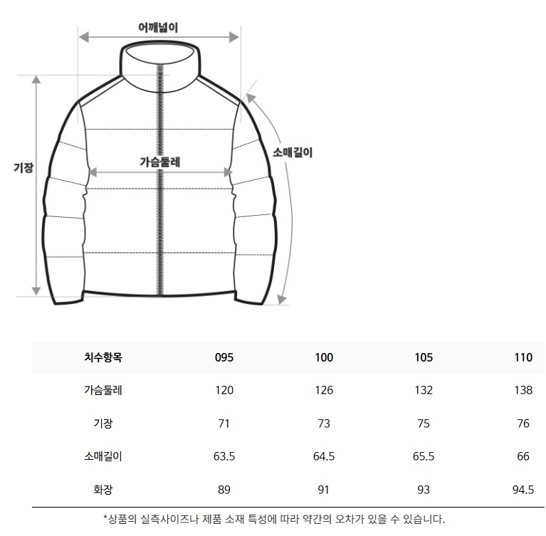 - 발수 가공 처리를 하여 소재 및 다운 충전재가 젖는 것을 최소화