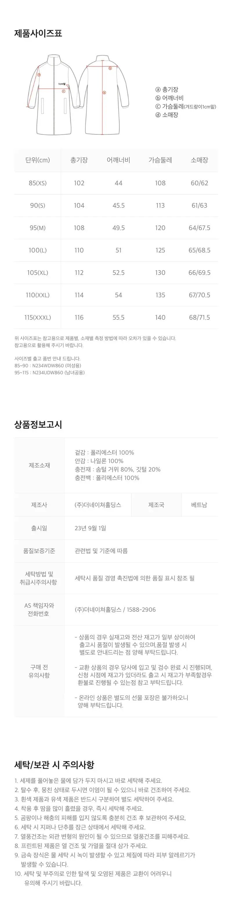 (신세계하남점)카이만 프로 롱기장 구스 다운 점퍼 N234UDW160