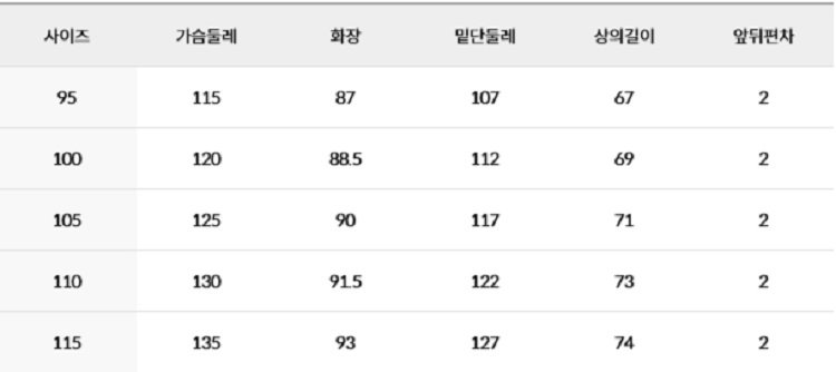 사이즈 조건표