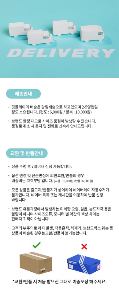 -상품박스훼손,택/라벨 제거 외부 착용,착화,세탁을 한 경우 반품 및 교환이 불가합니다.