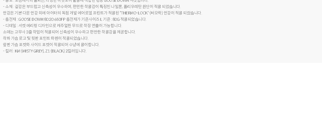 (롯데백화점)남성 THERMOLOCK C (써모락 C) 슬림 다운 셔켓 (Black) DMW24562_Z1