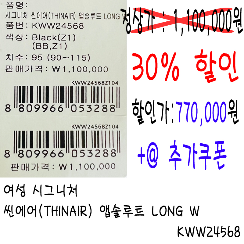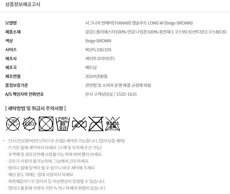 케이투 여성 시그니처 씬에어(THINAIR) 앱솔루트 LONG W KWW24568-I