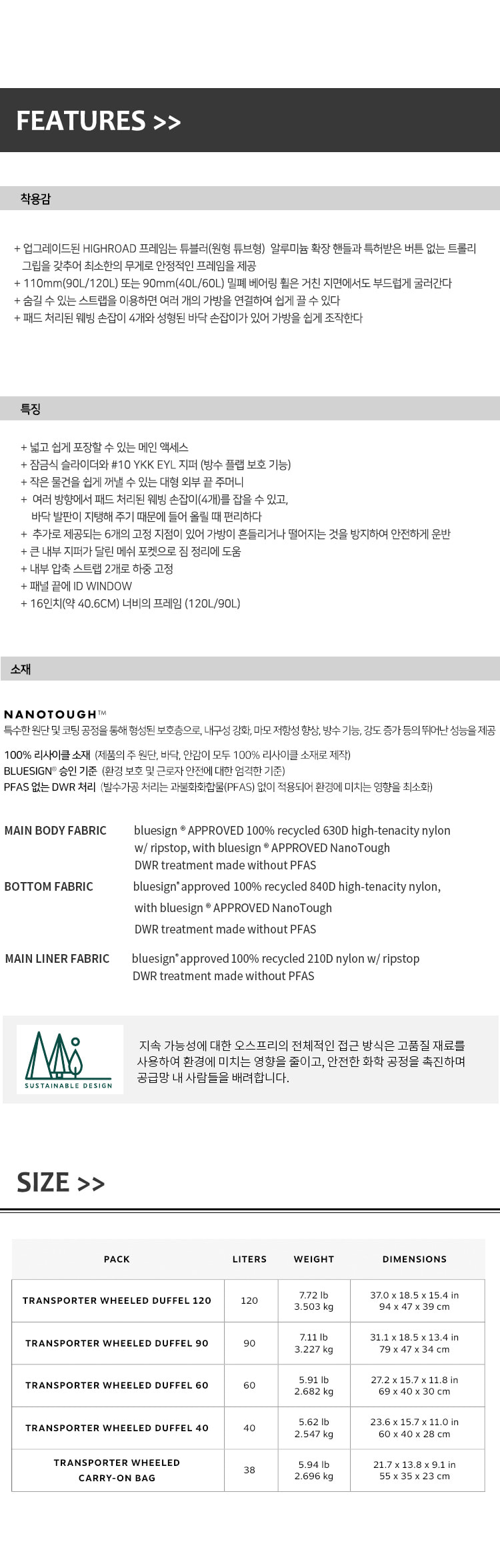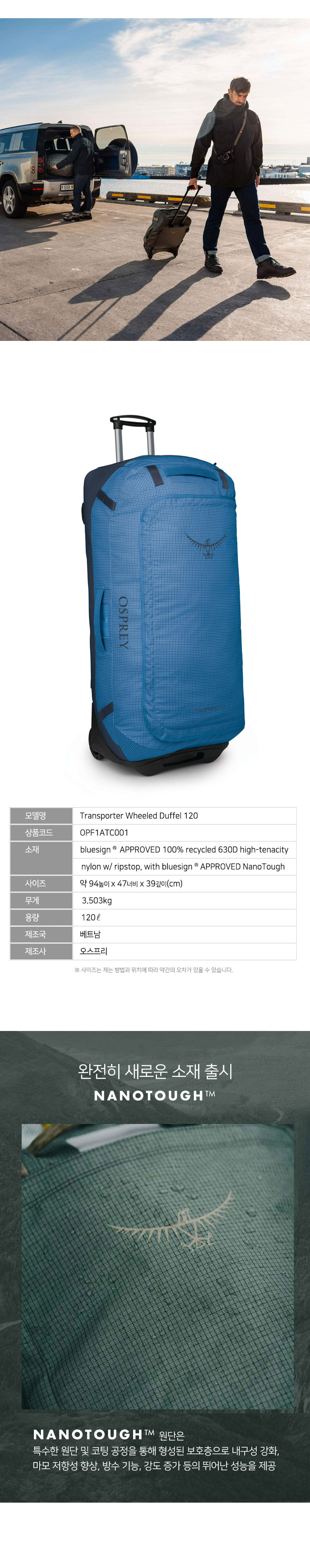 오스프리 트랜스포터 120L 휠 더플백
