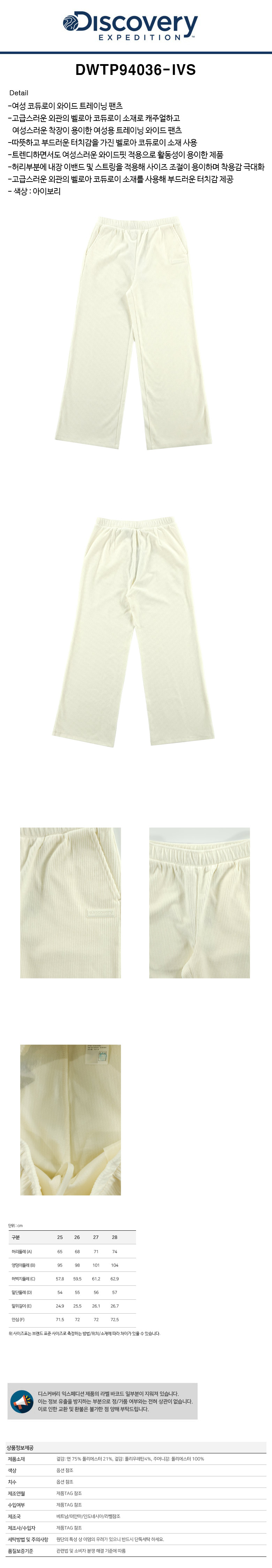 디스커버리디스커버리 여성 코듀로이 와이드 트레이닝 팬츠 DWTP94036-IVS