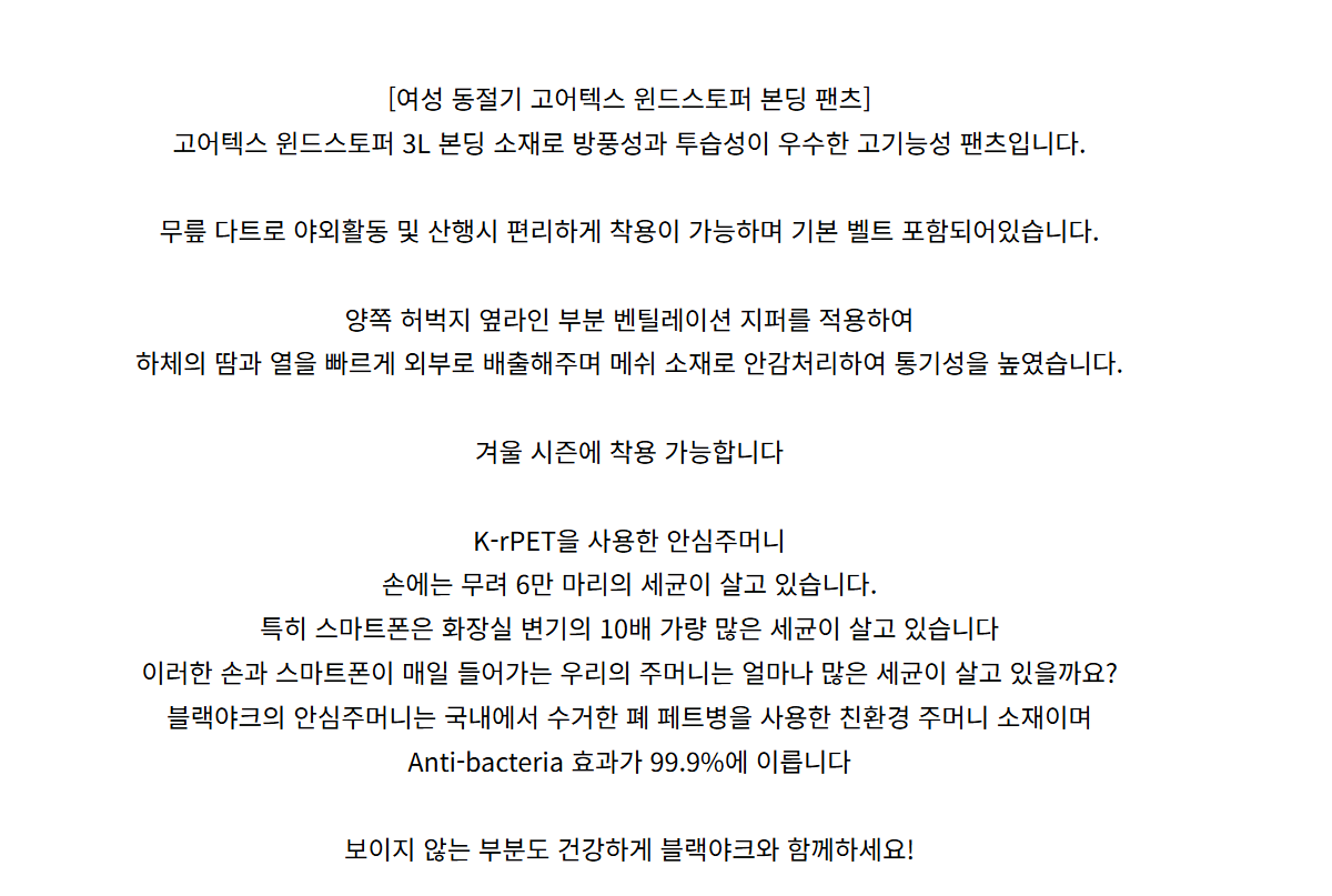 블랙야크 M 윈드스토퍼 본딩 팬츠 방풍 기능성 겨울 기모 바지 1BYPNW3511