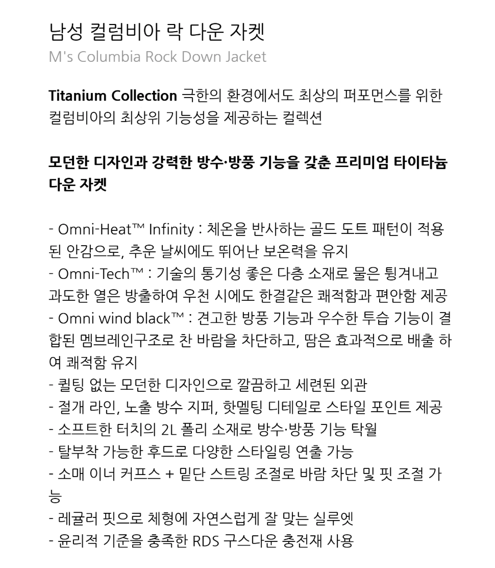 컬럼비아 남성 락 다운 자켓 C64YM3572-010