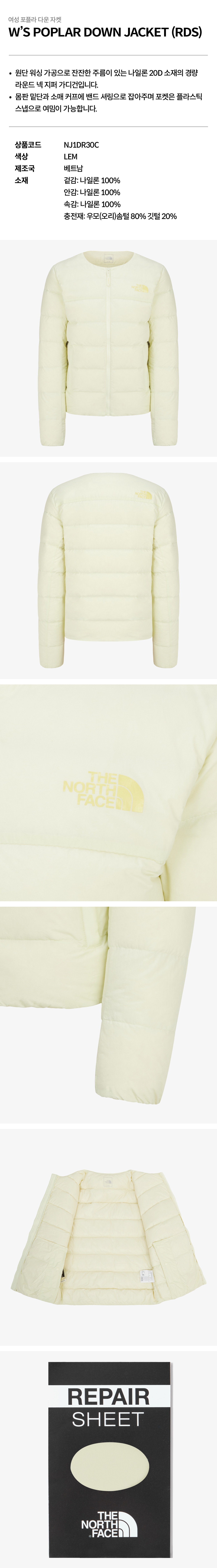 여성 포플라 다운 자켓 NJ1DR30C_LEM