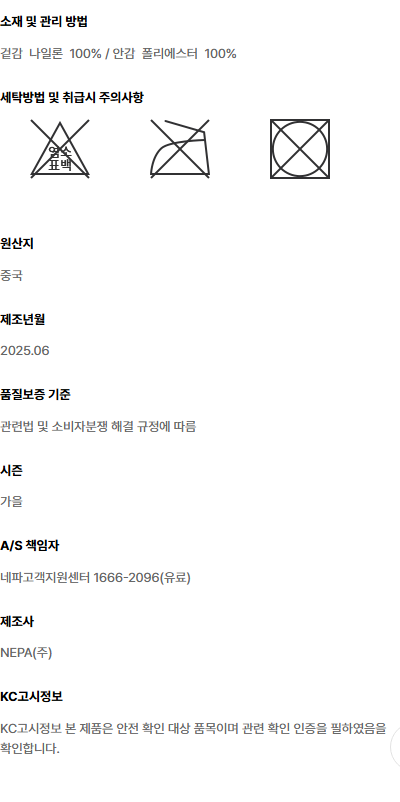 ※ 상품정보 문의 : 브랜드 매장 02-2163-3560