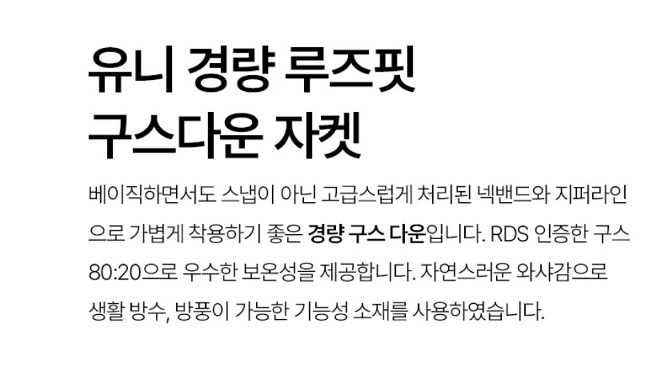 (셀러허브)르꼬끄 QQ423LDJO1 유니 경량 루즈핏 구스다운 자켓 / BLACK (S41283513)