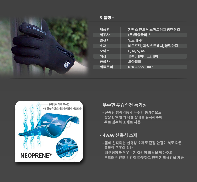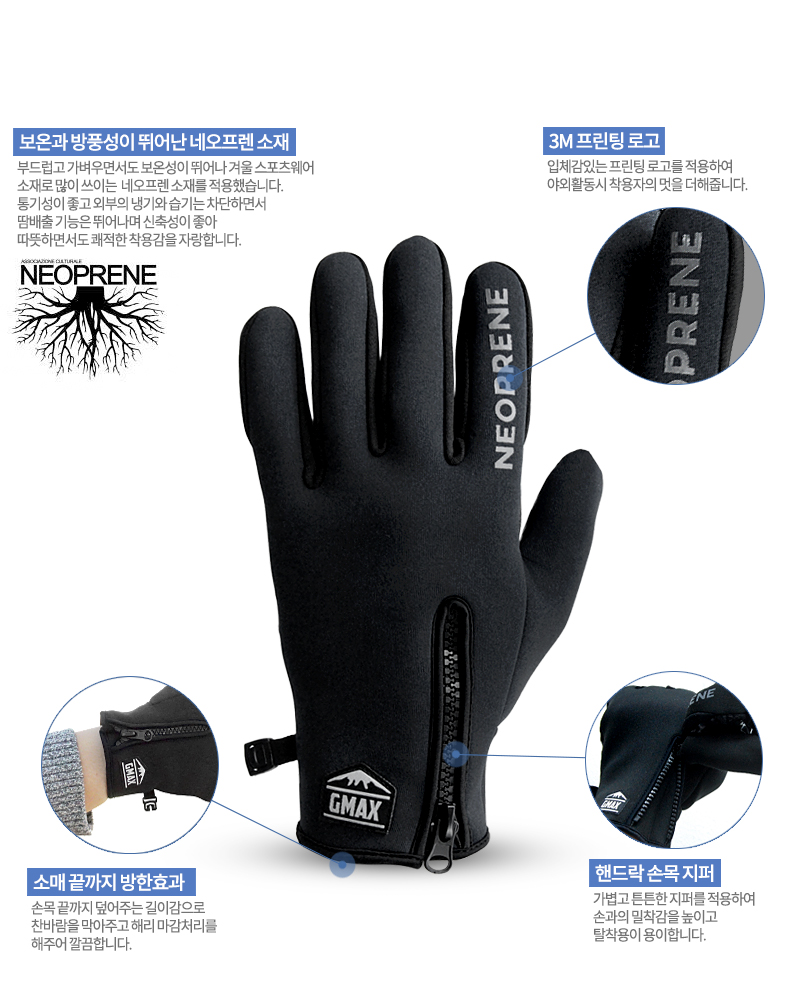 GMAX 지맥스 네오프렌 스마트터치 겨울 방한장갑