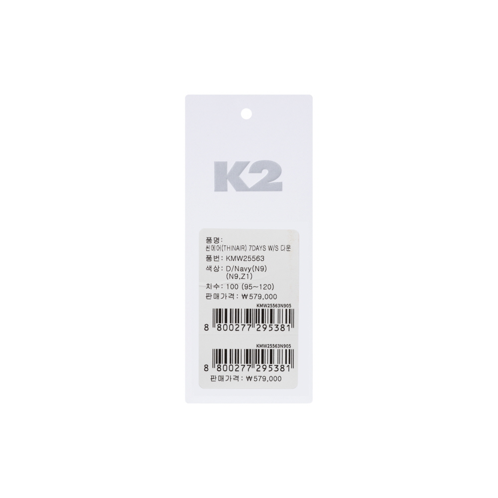 K2 케이투 남성용 씬에어 7DAYS 고어 윈드스토퍼 구스다운 점퍼 KMW25563N9 다크네이비