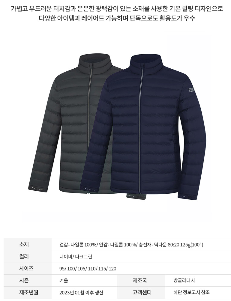 (신세계마산점)KUJ6852M 남성 기본 퀄팅 경량 덕다운 KUJ6822
