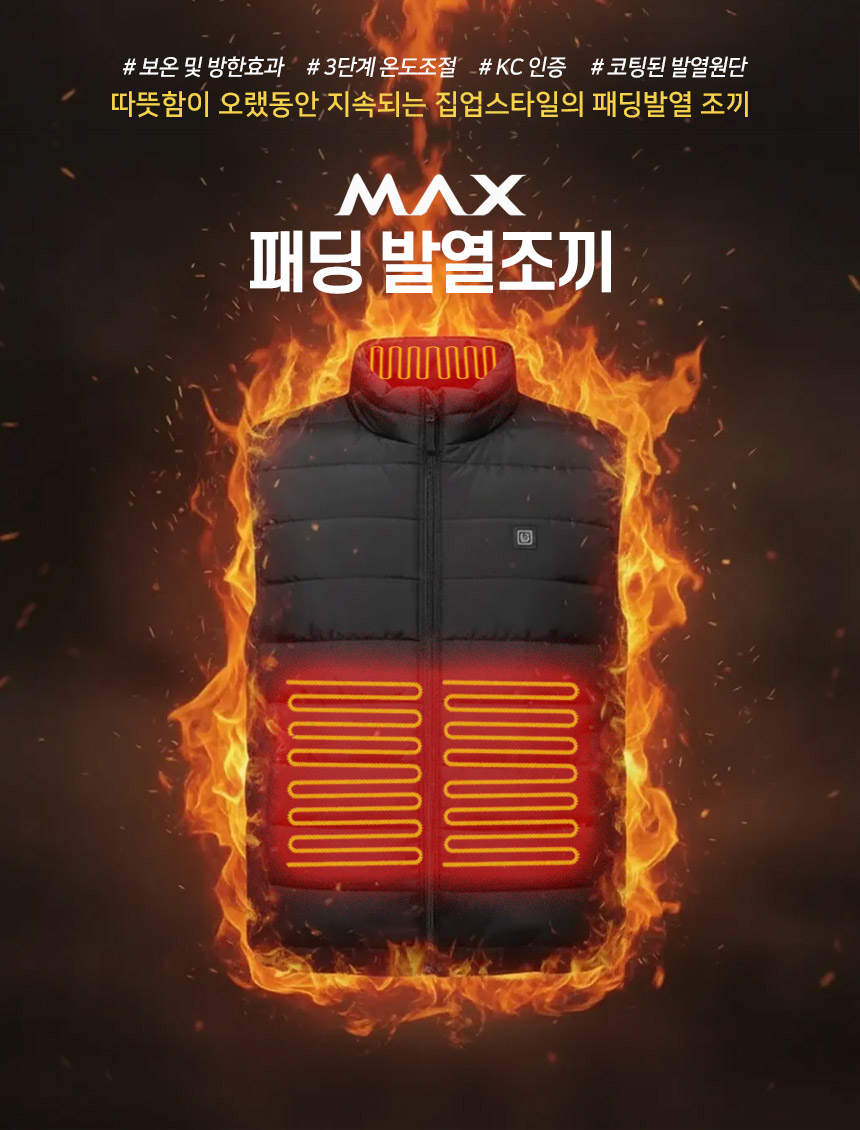 MAX 패딩 발열조끼 3단조절 온열 조끼 열선 겨울 작업복 방한조끼