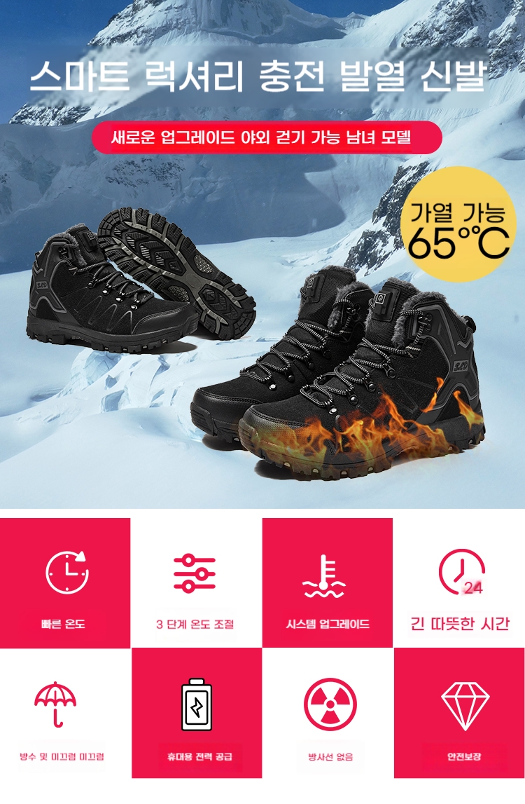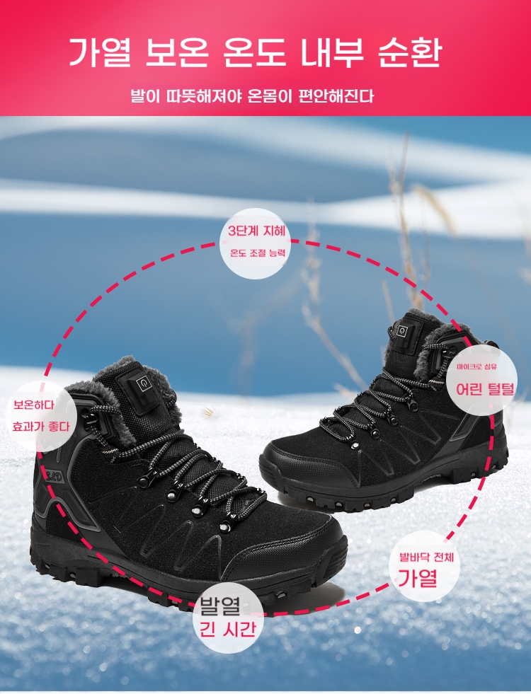 충전식 발열 신발 따뜻한 부츠 등산화 등산 골프 열선 방한 캠핑