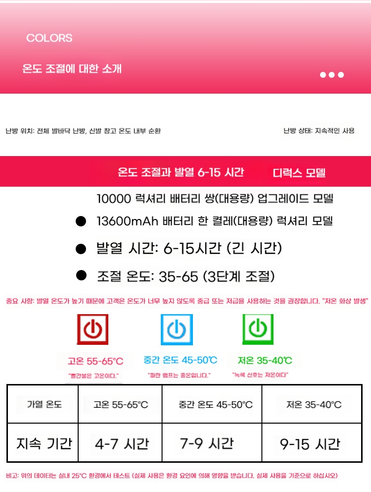 충전만 하면 언제 어디서나 따뜻함 유지!