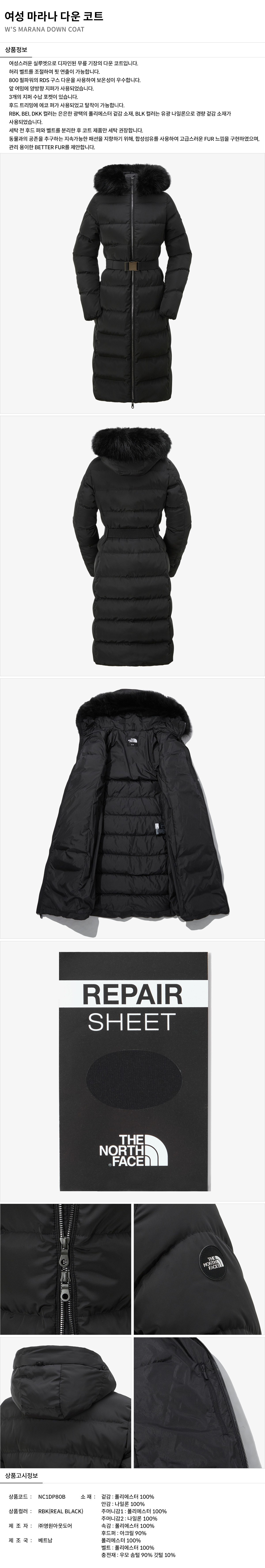 여성 마라나 다운 코트 NC1DP80B_RBK