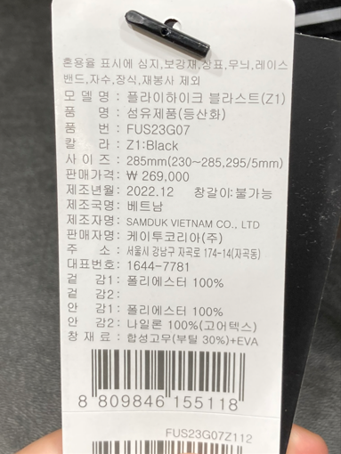 평상시 운동화/구두보다 5mm 여유감있게 추천.