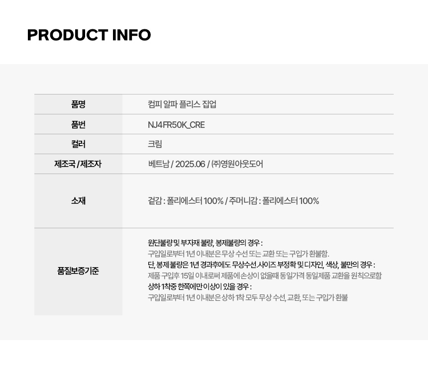 컴피 알파 플리스 집업 NJ4FR50K_CRE