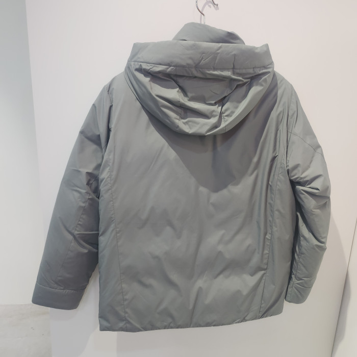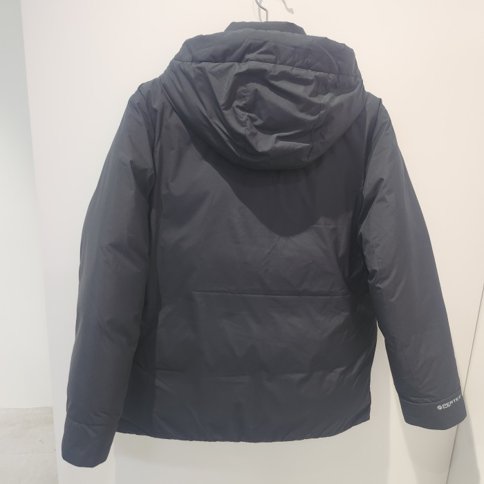 Recycle원사를 사용하여 친환경적이며 경량성과 부드러운터치감 방풍성이 뛰어난 다운제품발수가공처리로 기상변화에 충분히 대응가능하며 고품질의 충전재로 내부체온유지 핸드가슴및 인포켓 적용 후드탈부착통해 다양한 연출가능