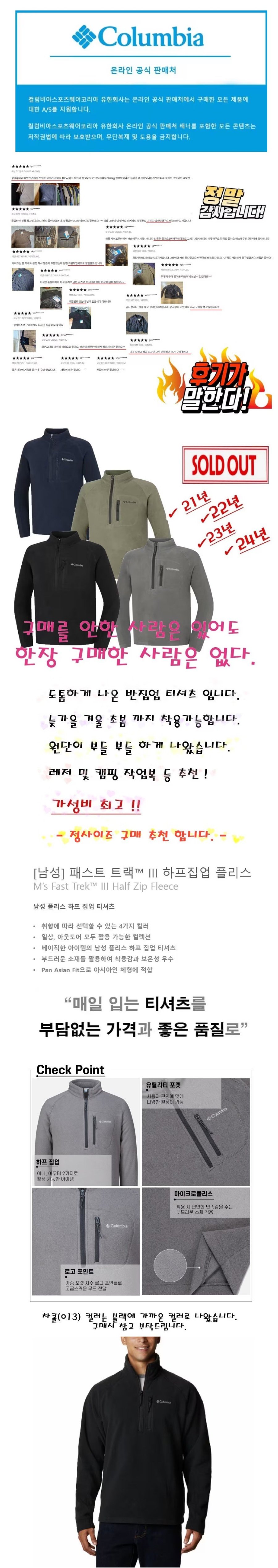 (대전신세계)컬럼비아 남성 패스트 트랙 III 하프집업 플리스 티셔츠 XO6410-011