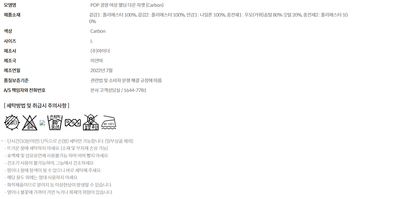 Product Name. | POP 경량 여성 웰딩 다운 자켓 |