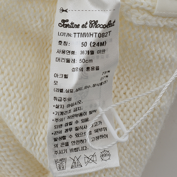 취급방법 및 취급시 주의사항, 안전표시 : 삶지 마십시오. 기계건조 금지. 주의! 작은 부품이 탈락되면 삼킬 수 있음.