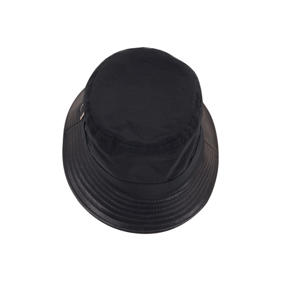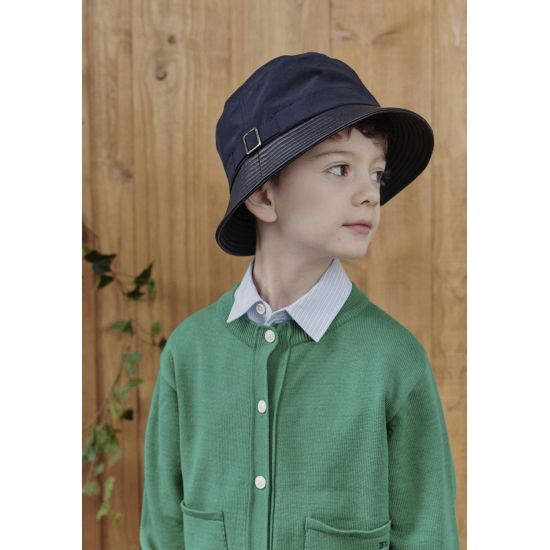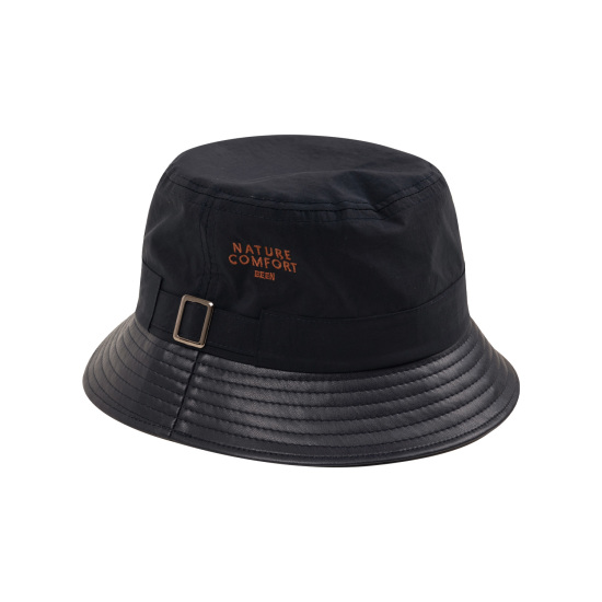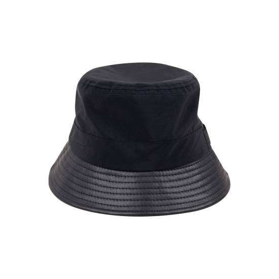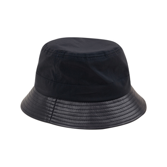네이비 컬러의 화섬원단에 레더가 톤온톤으로 배색된