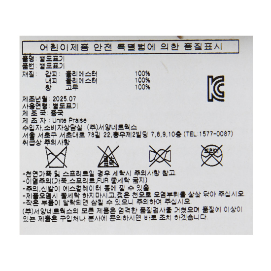 • 본 상품은 어린이제품 안전특별법 안전확인 대상품목으로 아래의 어린이제품 안전특별법 안전확인 을(를) 필하였습니다.