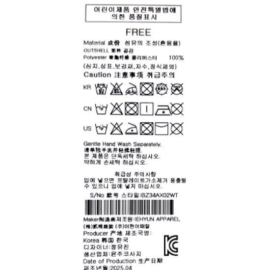 본 상품은 어린이제품 안전특별법 공급자 적합성 대상품목으로 아래의 어린이제품 안전특별법 공급자 적합성 을(를) 필하였습니다.
