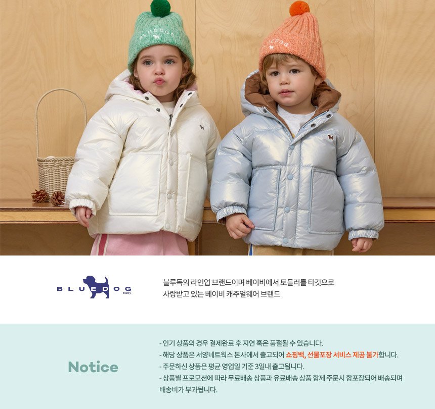 | 소재 | 겉감 : 폴리에스터 100%, 배색1 : 폴리에스터 100%, 배색2 : 폴리에스터 100%, 안감 : 폴리에스터 100%, 충전재 : 폴리에스터 100% |