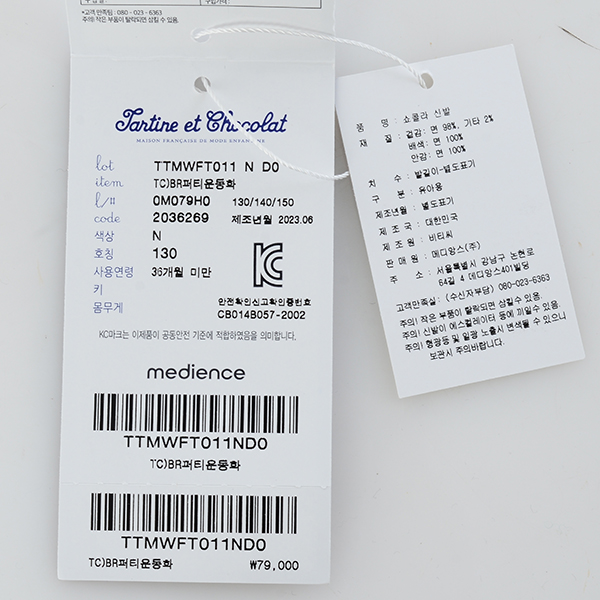품명 및 모델명 : [쇼콜라]TC)BR퍼티운동화(TTMWFT011)