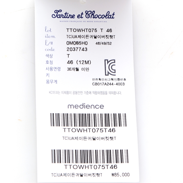 사용연령 또는 권장사용연령 : 36개월미만