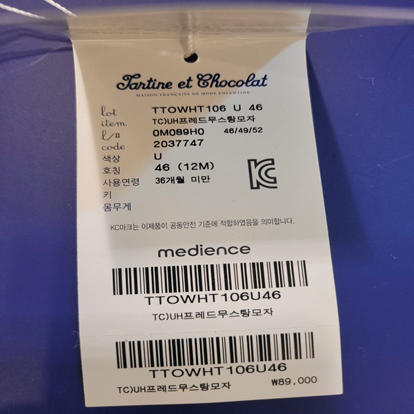 크기ㆍ체중의 한계 (착용 또는 탑승용 어린이제품과 같이 크기ㆍ체중에 제한이 있는 품목의 경우 반드시 표시) : 36개월 미만