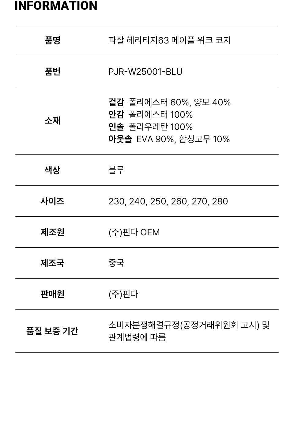 파잘 헤리티지 63 메이플 워크 코지 블루 PJR-W25001-BLU