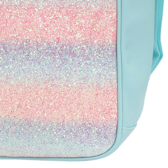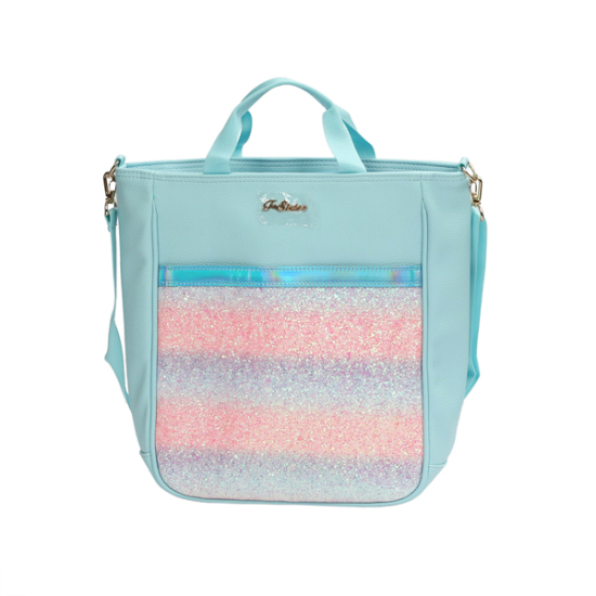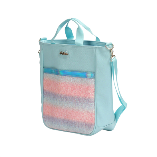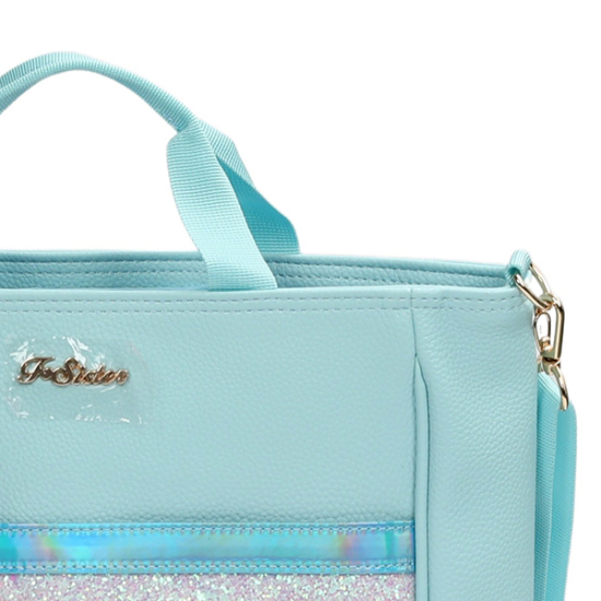 상세설명-블루 칼라 소재와 아랫쪽에 책가방에 사용된 펄 그라데이션 소재로 포인트를 주고 로고 장식으로 깔끔함을 살린 보조가방입니다.