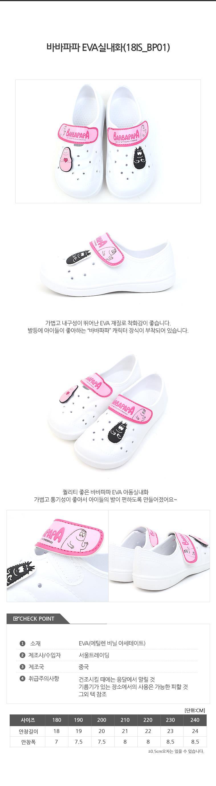 바바파파캐릭터 찍찍이 가벼운 초등 실내화 230mm 키즈용 K102453