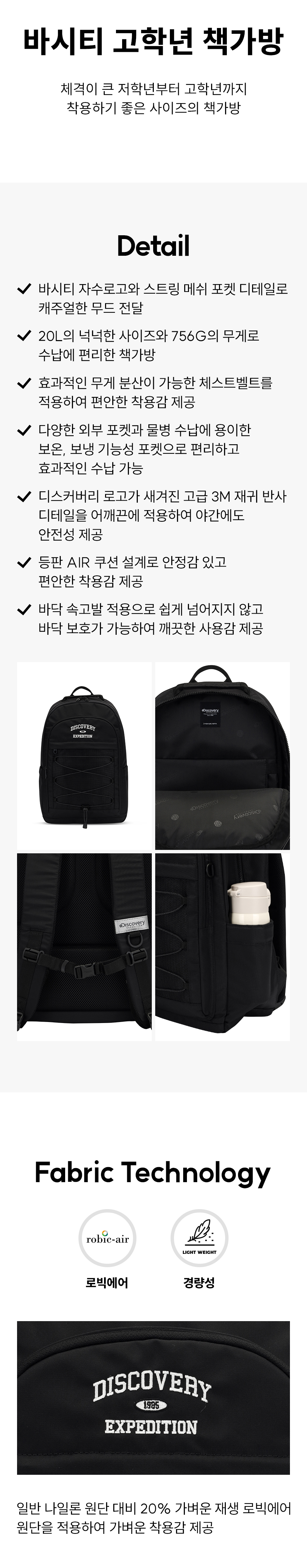 -디스커버리 로고가 새겨진 고급 3M 재귀 반사 디테일을 어깨 끈에 적용하여 야간에도 안전하게!