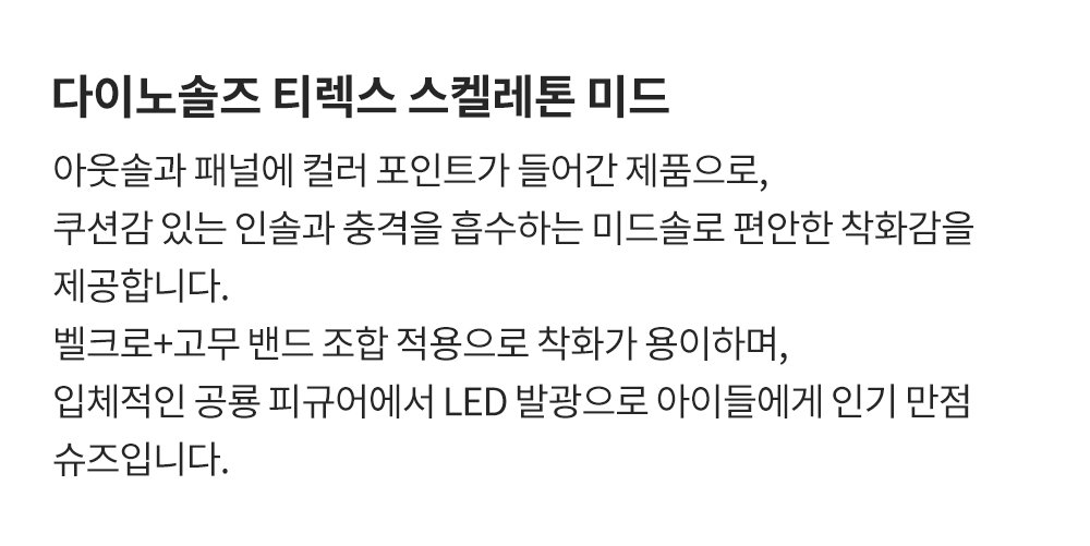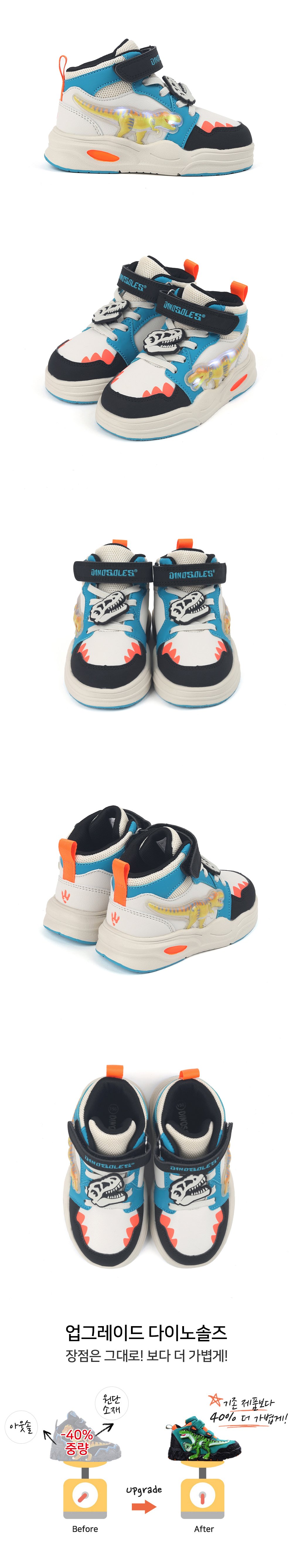 (신세계센텀점)DINOSOLES 다이노솔즈 티렉스 스켈레톤 미드 불 나오는 LED 운동화(150mm~190mm)