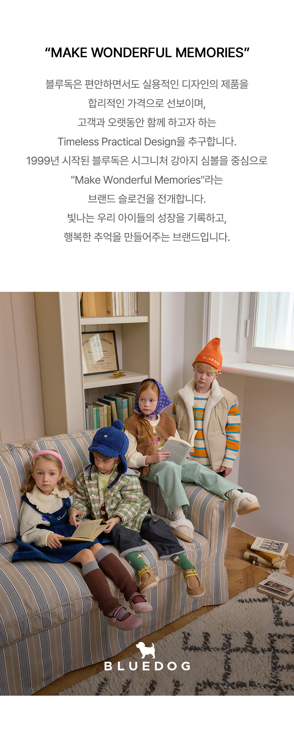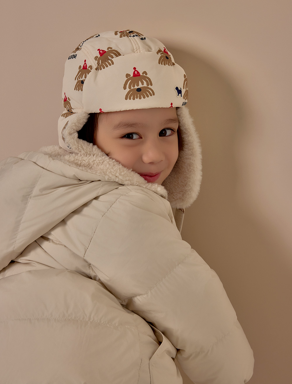 "블루독 의류와 연결된 화섬을 활용한 패딩 모자 머플러 세트입니다.