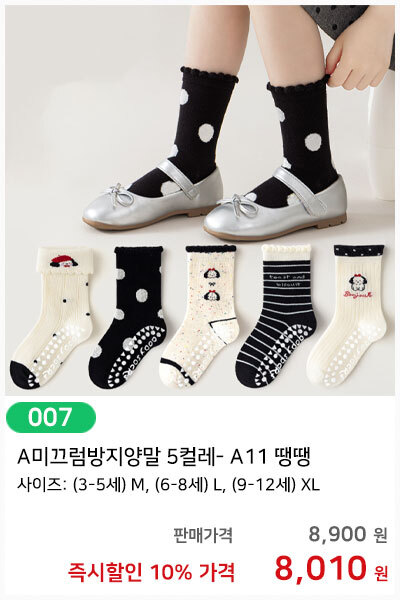 투해피 유아동양말 5켤레 묶음세트 /미끄럼방지양말/아동 장갑 목도리