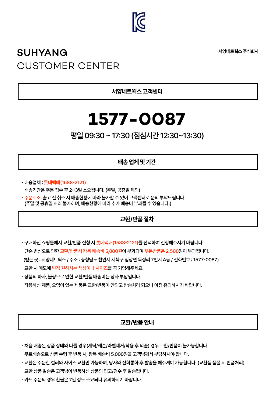 | 품질보증기준 | 관련법 및 소비자분쟁해결 규정에 따름 |