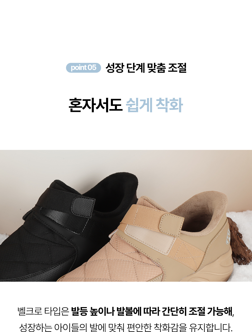 PWX 바로인슈즈 허그 벨크로 주니어 남아 여아 방한슈즈 털운동화 블랙