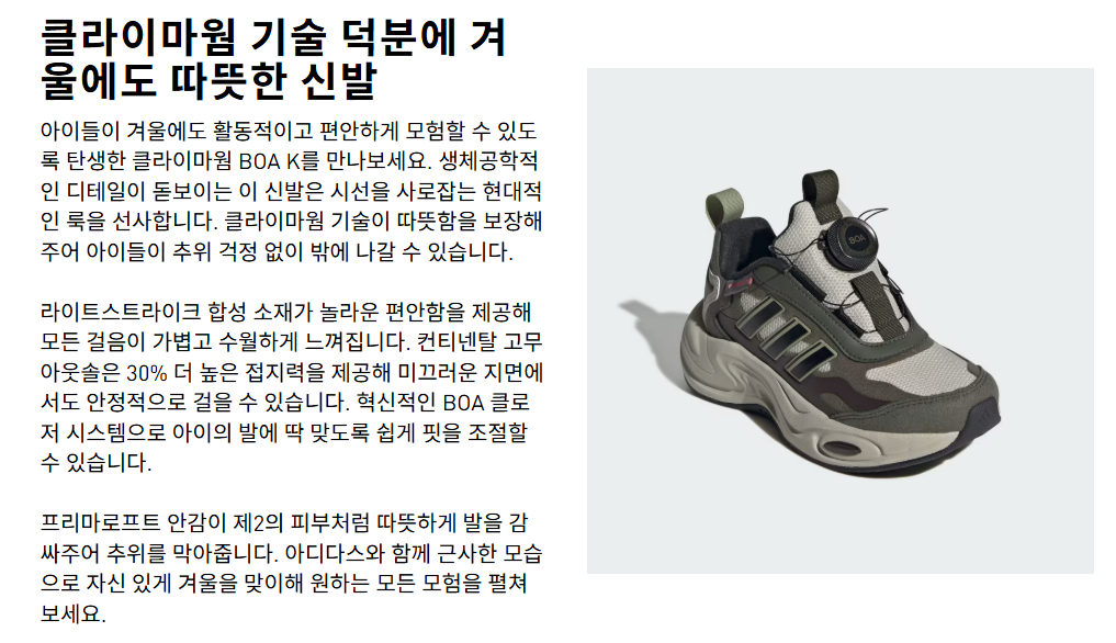 (신세계김해점)adidas kids (170~240)CLIMAWARM BOA K (JR2147)