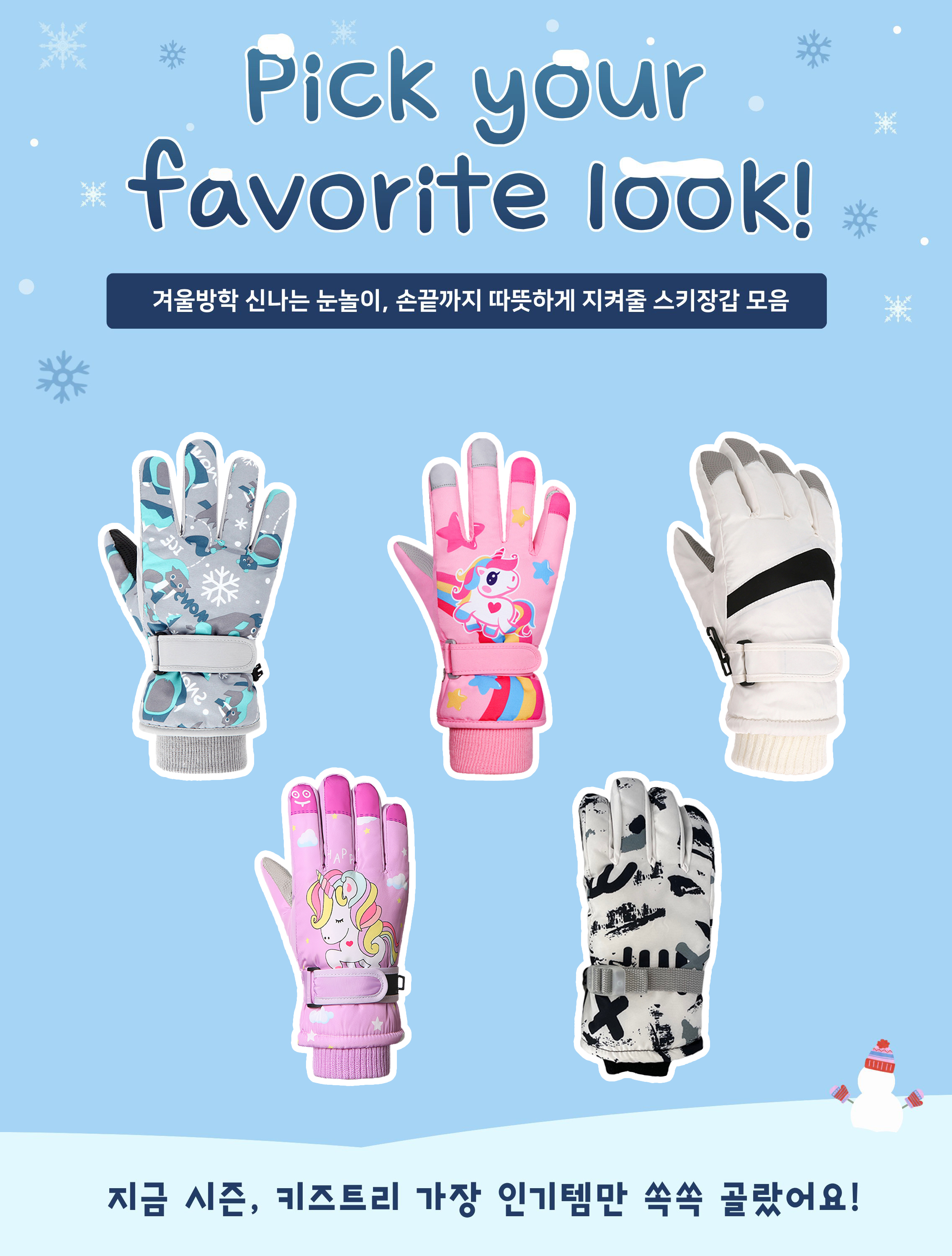키즈트리 유아 아동 키즈 어린이 여아 남아 초등 학생 겨울 방한 털 벙어리 손가락 방수 스키 패딩 장갑