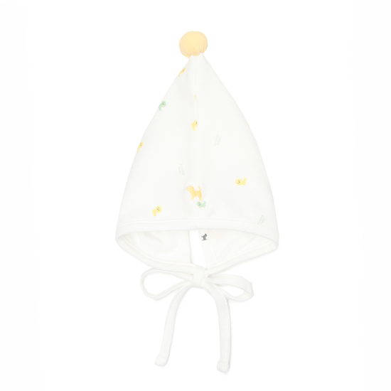 벰 캐릭터 비비패턴에 강아지 자수를 매치하고 폼폼방울로 포인트를 준 아이템입니다.